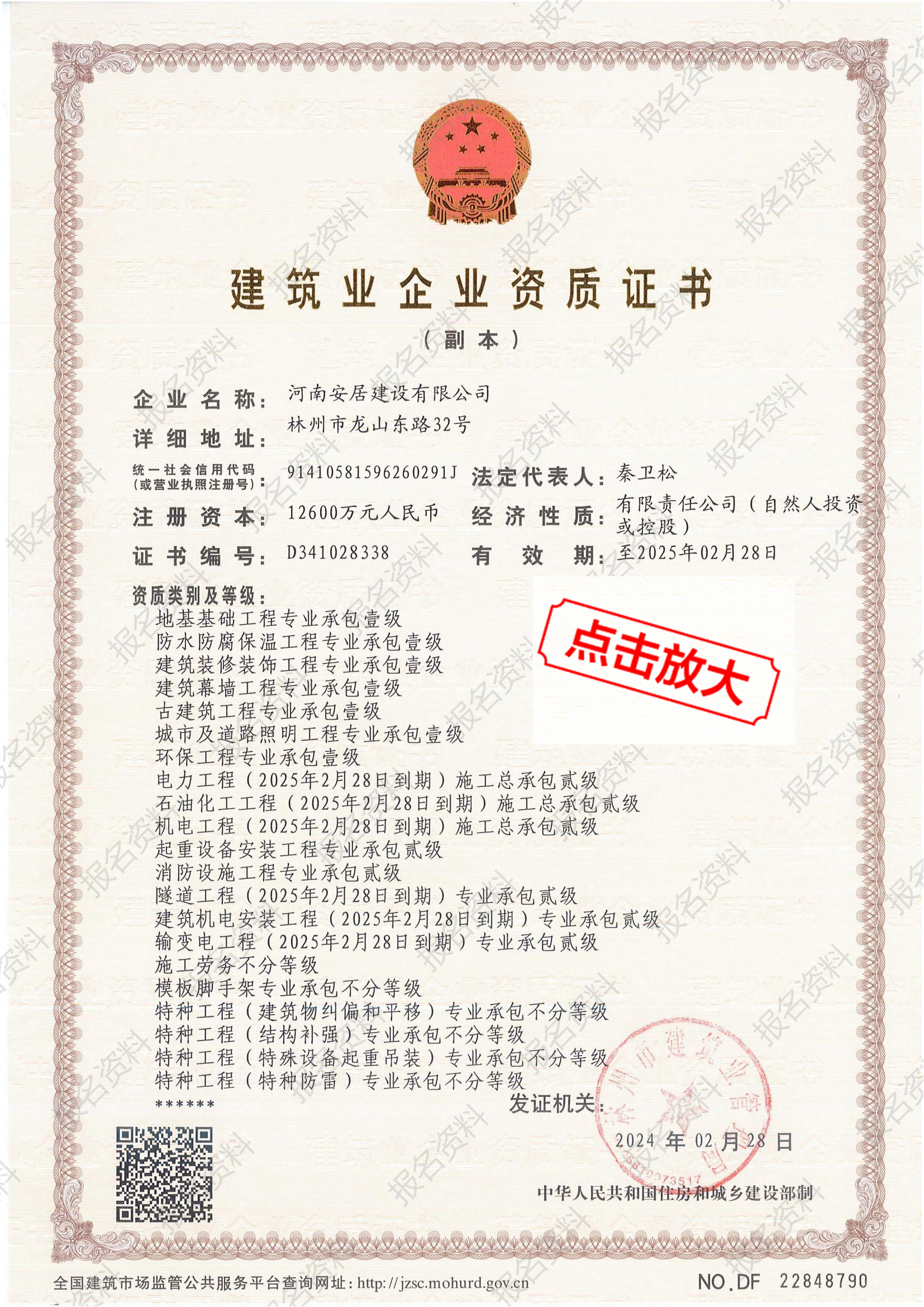 房建、市政十項(xiàng)一級(jí),共二十余項(xiàng)資質(zhì)